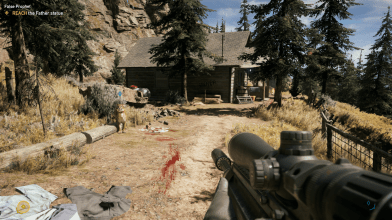 But the one that made an impression on me-and perfectly sums up the ability the game has to create memorable moments-is one I just stumbled upon while wandering the mountains in Jacob’s region. As I was heading in the direction of a collectible, I heard a gunshot somewhere nearby. I got curious and followed the sound, until I came to a bunker entrance with the body of a lifeless woman just outside and a cougar lurking. I took care of the cougar and found a key to the bunker on the body of the unfortunate woman which let me in and, after I followed the blood trail, led me towards another unfortunate, lifeless body of a male; but there was something different with this one. Next to his lifeless body were a blood-soaked note and a handgun. The note described that the man and the woman outside made a deal that if anything went wrong, they would ensure at least one was safe thus the man locked himself in the bunker while the woman was dying a horrific death. The man heard everything: The screaming sounds of his friend/spouse’s last, painful moments, and he had witnessed Phil’s last moments as well. He could still hear the screaming. All he wanted was for the screaming to stop, and he made his wish come true… This story is not part of a prepper stash nor do I know who Phil is or the relationship the man had with the woman; I don’t even know what killed the woman: the cougar or the cultists that then took off to find a way in the bunker? All I know is that these moments are the parts that I will definitely take with me now that I’m done with the game.