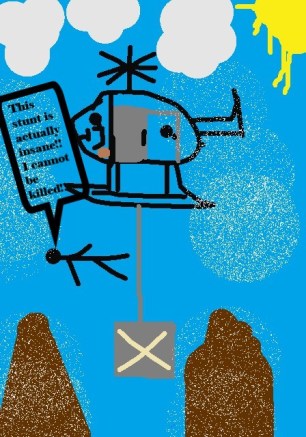 - H: Well, we already saw glimpses of the helicopter stunt in some trailers, but the whole stunt is just amazing; I’m owlnestly convinced he has a death wish, or he actually thinks he is indestructible!